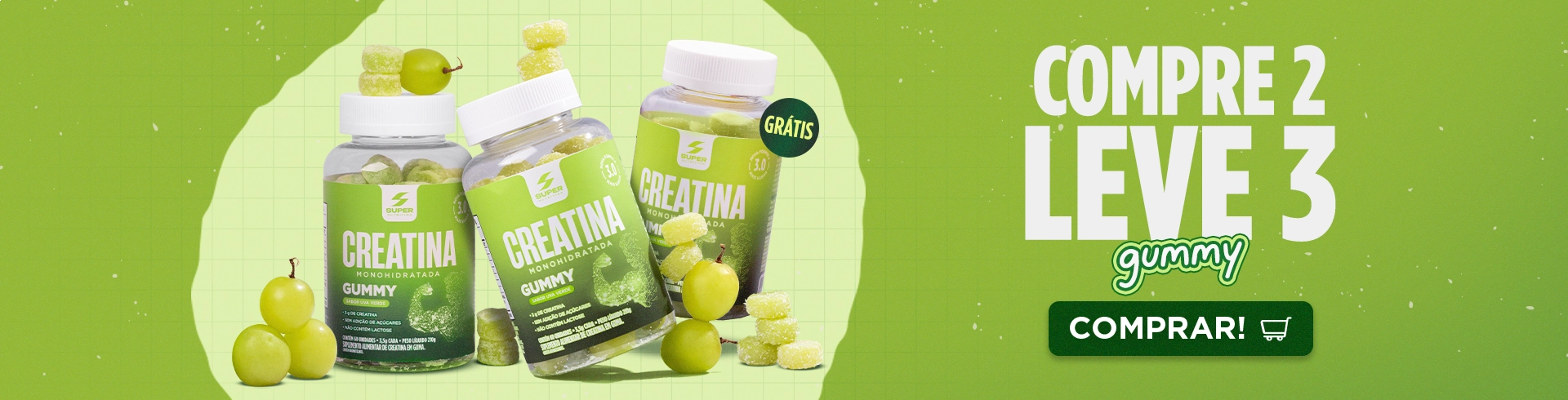 Super Gummy Creatina Sabor Uva Verde (60 gomas)